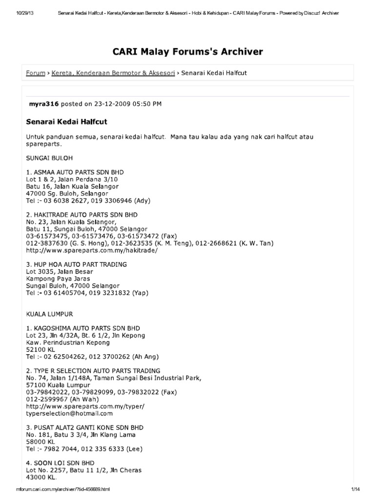 Senarai kedai kereta potong Klang Valley SUNGAI BULOH 1. Klang Hin Leong Tyre Services. Halfcut Melayu Terbesar Asmaa Geng Workshop Malaysia Facebook.